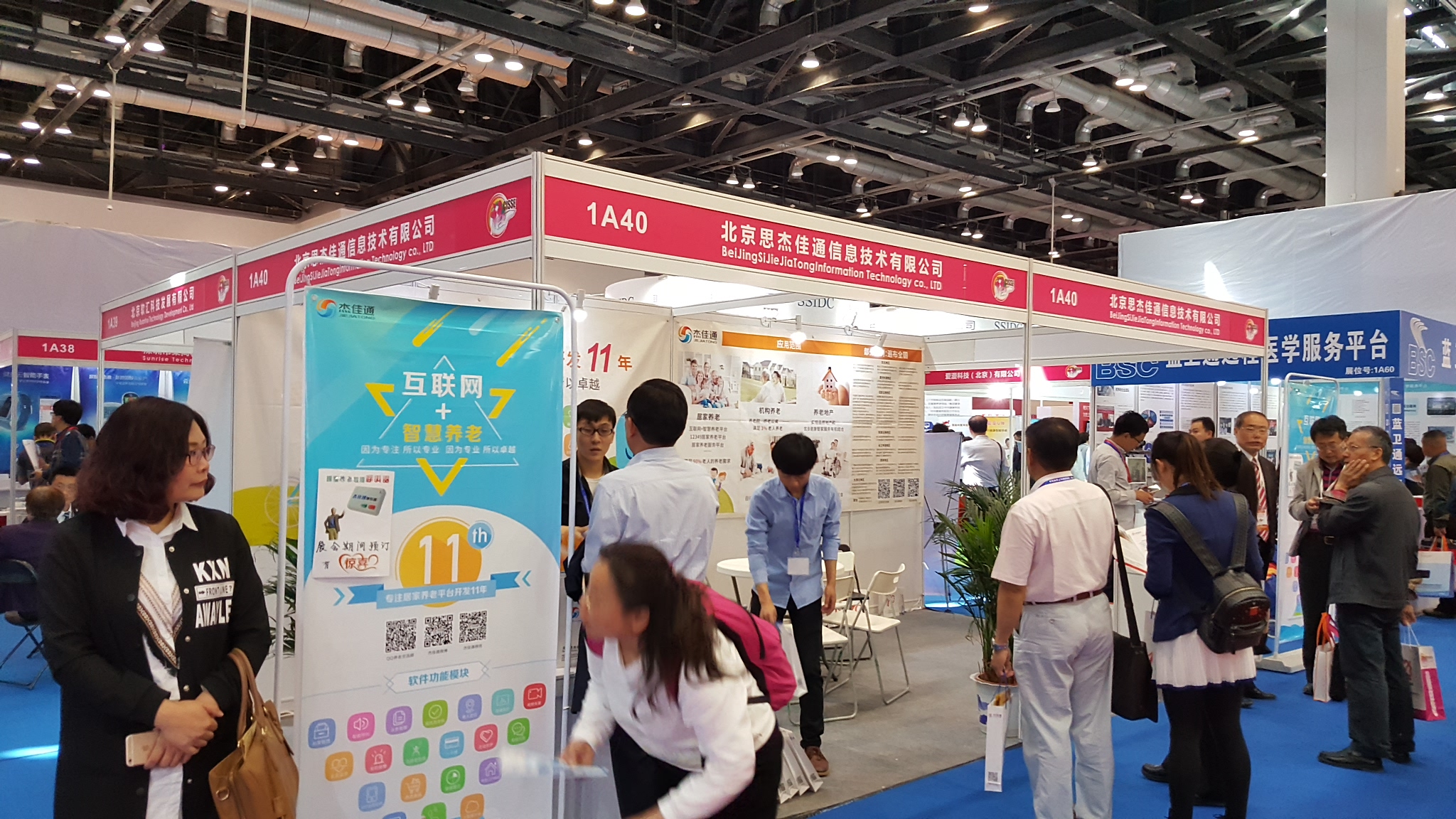 - 2016 第五屆中國國際養老服務業博覽于5月3-5日在國家會議中心舉行,杰佳通展位號為1A40(2展位),由于杰佳通在行內的知名度,大量參觀者光臨小展臺。